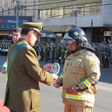 Este jueves 27 de Abril, en la Avda. Pedro Montt de nuestra ciudad, se realizó la ceremonia de conmemoración del 90° aniversario de la fundación de Carabineros de Chile, ocurrida en igual fecha del año 1927. Este acto, fue presidido por el Intendente Regional Gabriel Aldoney Vargas y por el Jefe de la Vª Zona de Carabineros “Valparaíso” General Jaime Barría Montiel. En la ocasión, junto a otras altas autoridades, se hizo presente en representación de nuestra Institución el Superintendente Erasmo Olivares Ojeda. Dentro de las diversas premiaciones entregadas a funcionarios policiales, tanto por actuaciones destacadas como por cumplimiento de años de servicios, destacó además, la otorgada al Bombero de la 16ª Compañía “Bomba Bernardo O´Higgins” Juan Carlos Espinosa Avarias quien fue reconocido por su arrojo en circunstancias que perdiera su vivienda, en el incendio declarado del 2 de Enero pasado y pese a ello, continuara prestando su servicio de ayuda en tan fatídica jornada, recibiendo un estímulo de parte del Jefe de la Vª Zona de Carabineros.
