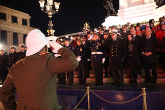 En el marco de la conmemoración del 145° aniversario del Combate Naval de Iquique y el Día de las Glorias Navales, el Cuerpo de Bomberos de Valparaíso realizó una ceremonia y posterior desfile frente al monumento a los Héroes de Iquique, ubicado en la plaza Sotomayor de la ciudad puerto.