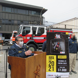La mañana de este viernes 29 de octubre, a través de un acto que se desarrolló frente al "Monumento al Bombero", ubicado en Avenida Brasil esquina calle Freire, se dio por iniciada oficialmente la 47° versión de la "Rifa del Cuerpo de Bomberos de Valparaíso", tradicional campaña económica, que este año 2021 se hará de forma dual, es decir, una parte de venta electrónica a través de la plataforma electrónica: www.ticketplus.cl y la otra, con venta presencial de los Bomberos (as) en los diferentes puntos tradicionales de nuestra ciudad, así como en el ingreso de Supermercados y Centros Comerciales. El valor de cada boleto, se ha mantenido en $1.000.- extendiéndose la venta de los mismos, hasta el 14 de enero de 2022. El sorteo final, se llevará a cabo el viernes 21de enero en la Plaza Sotomayor. La presente Rifa, tiene Once (11) Grandes Premios, que son encabezados por un Automóvil marca Suzuki Año 2021 y que se completan con dos Televisores LED, dos Refrigeradores de dos puertas, dos Cocinas cuatro platos, dos Lavadoras/Secadoras y dos Bicicletas mountain bike. En la ocasión, se hicieron presentes delegaciones de todas nuestras Compañías, así como los Oficiales Generales, presididos por nuestro Superintendente Erasmo Olivares Ojeda, quien se dirigió a los asistentes, entregando los antecedentes acerca de la importancia de llevar a cabo esta campaña y a la importancia que para el presupuesto institucional esta tiene, efectuando a la vez, un fuerte llamado a la Comunidad de Valparaíso a cooperar en la misma. Producto de la serie de importantes ingresos que se han dejado de percibir, como consecuencia de la pandemia del Coronavirus, que aún nos afecta, resulta fundamental el apoyo que podamos obtener de parte de la ciudadanía en esta ya tradicional Campaña, recalcó el Superintendente Olivares, considerando, además, los compromisos adquiridos por el Cuerpo de Bomberos de Valparaíso hasta el año 2023 y en moneda extranjera, por la adquisición de ocho nuevas Unidades, dentro del proceso de renovación de aquellos “Carros Bombas” que cuentan con un período de servicio, superior a los 20 o 25 Años.